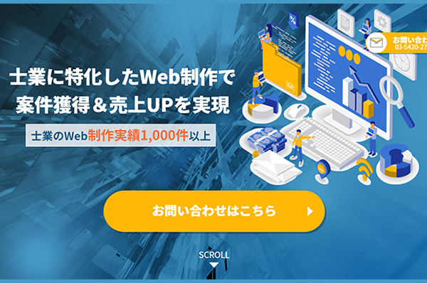 士業業界の特性に精通した専門コンサルタントが、Webサイトの制作から集客・採用・営業戦略まで一気通貫で支援します。Webマーケティング領域では、2,800件超のWeb支援実績と1,000件を超える士業サイトの制作実績を活かし、事務所の目的に応じた成果に直結するWebサイトを提供。事務所の顔となるホームページ制作はもちろん、アウトソーシングや障害年金など業種特化型サイトにも多数対応しています。
