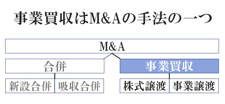 事業売却(譲渡)はM&Aの手法の一つです。M&Aとは株式譲渡と事業譲渡、さらに合併も含めた「Mergers(合併)and Acquisitions(買収)」の総称です。