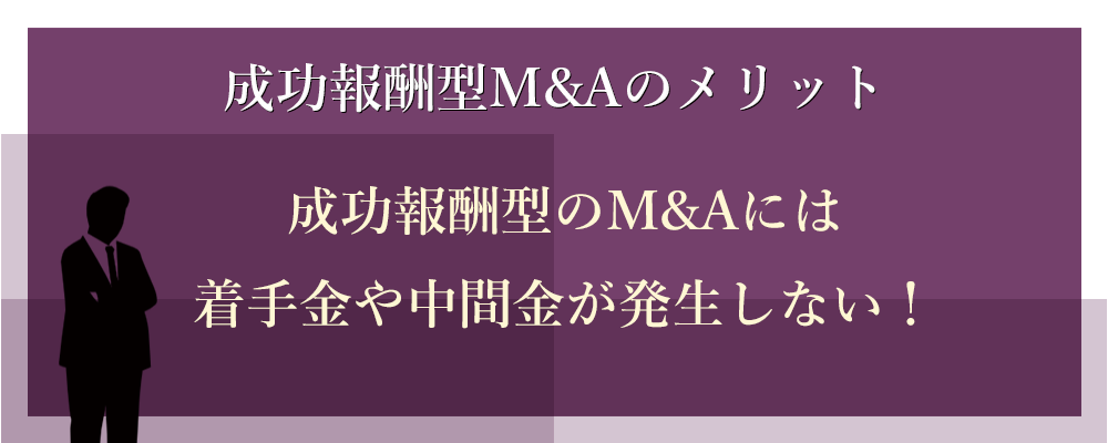成功報酬型のM&Aでは、こうした着手金や中間金などの手数料は発生しません。