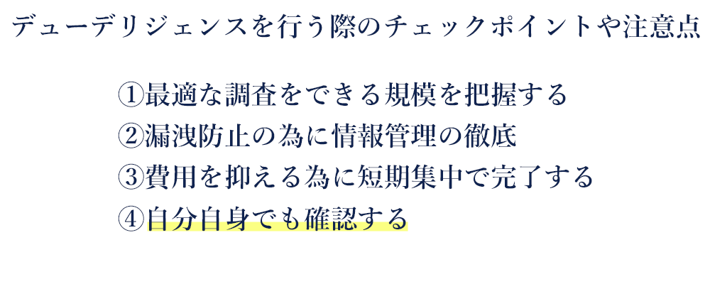 デューデリジェンスを行う際のチェックポイントや注意点