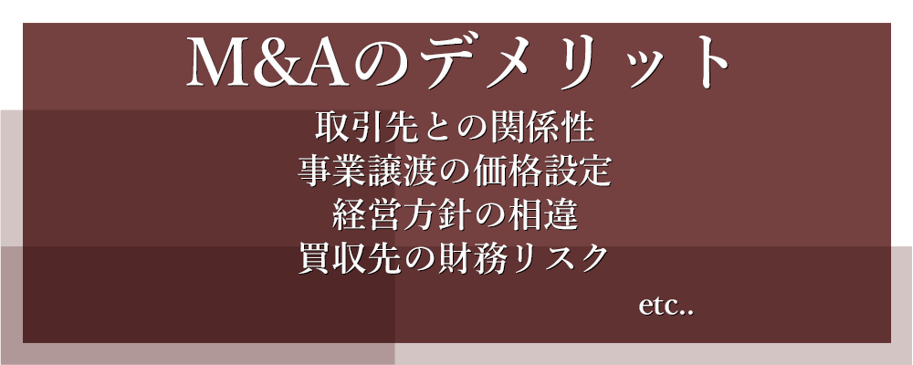 M&Aによる、売却側と買収側でのデメリットおよびリスクは以下のとおりとなります。