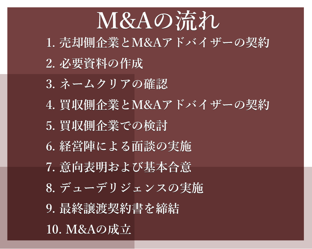 通常、M&Aは以下の流れで行うのが一般的です。ここでは、M&Aの流れについて紹介します。