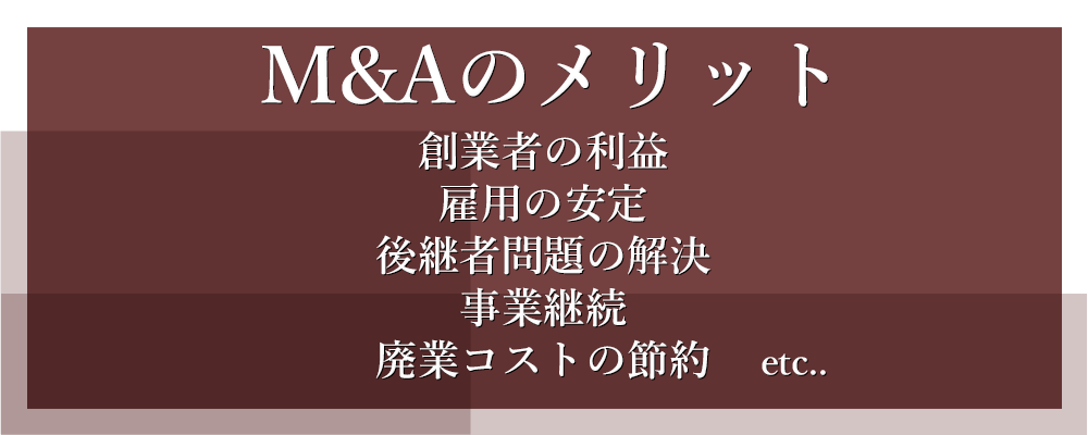 後継者がいないことで、自分の代で廃業を検討している場合も、M&Aにより事業の継続が可能となります。