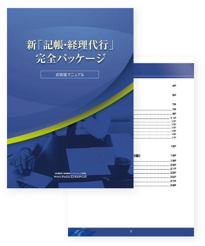 アックスコンサルティングがこれまでに行ってきた経理代行業務で、業務効率化を実証したマニュアル・ツールで、記帳代行の業務効率化、経理代行の受注・運用をサポートします。