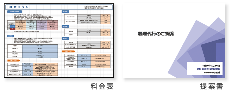 業務範囲、業務量に応じた料金表や提案書で